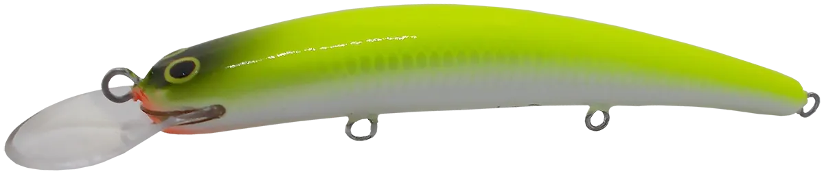 Abachi fából készült 5-10 cm hosszú, 5-13 gramm súlyú, 0.6-1.2 méteres max. merülésű, 2-szeres erősségű VMC horoggal szerelt végig drótozott testű wobbler.